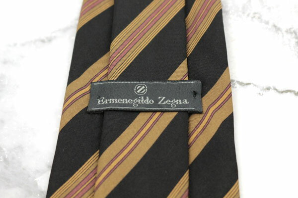 エルメネジルドゼニア Ermenegildo Zegna 世界最高峰ブランド 伊製 シルク ストライプ柄 ブラック シルク ブランド ネクタイ 送料無料 【中古】