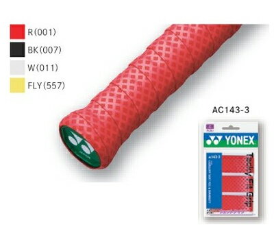 大量の汗でも滑りにくいウェットタイプグリップ ●品番 AC143-3 ●商品名 タッキーフィットグリップ(3本入り) ●素材 ポリウレタン+ナイロン ●サイズ 幅:25mm、長さ1.200mm、厚さ:0.7mm ●カラー レッド(001)ブラック(007)ホワイト(011)フラッシュイエロー(557) ●生産国 日本製 ※在庫は常に変動しておりますので、まれにご注文時に 在庫が切れている場合があります。