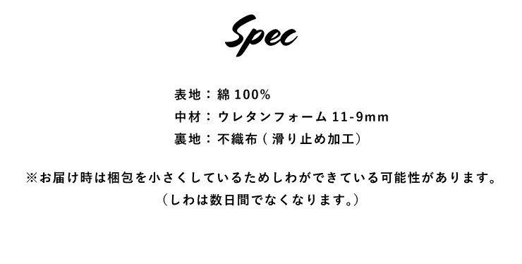 【原産国】中国【原材料】表地:綿100%中材:ウレタンフォーム 11-9mm裏地:不織布(滑り止め付)【商品サイズ】約185x185cm【重量】約1.7kg【代引きについて】こちらの商品は、代引きでの出荷は受け付けておりません。