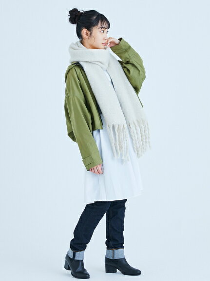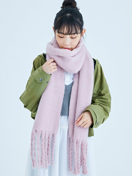 ボリュームのある生地と長いフリンジでお洒落に仕上げているので、いつもと同じ巻き方でもこなれ感のある雰囲気に仕上がります。